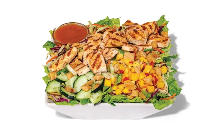 In terms of nutrition, the Mango Miso Crunch Salad contains around 650 calories per serving, making it a moderately filling meal option. The calorie count comes from a balanced mix of protein, fats, and carbohydrates, with a good amount of protein from the grilled chicken. It’s a popular choice for those who want something fresh and flavorful while still enjoying a satisfying, full-sized salad.