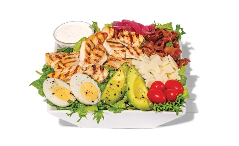This salad is a popular choice for customers looking for a protein-packed yet lighter meal option. It typically contains around 550–650 calories, depending on dressing and portion size. It’s a well-rounded choice that combines creamy, crunchy, and savory elements, making it both filling and flavorful without feeling too heavy.