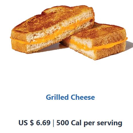 In terms of nutrition, the Grilled Cheese Sandwich typically contains around 400–550 calories, depending on the type of bread and amount of cheese used. It’s a lighter, satisfying option that works well on its own or paired with sides, making it popular among both kids and adults looking for a straightforward, tasty meal.